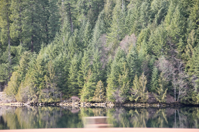 עלינו חזרה לקראוון לנסיעת המשך שתחילתה בכביש הצר עם חומות השלג בעליה חדה ביותר והמשכה בנופים מרהיבים של אגמים קפואים, נהרות זורמים, כמויות מים אינסופיות, אין שניה של נסיעה שלא רואים בה מי נהר או מי אגם או גם וגם, פשוט כמויות בלתי נידלות של מים, מים ועוד מים ואותם מלווים יערות אדירים וניפלאים של ירוק עד. הכל בגדול, פראי ומרשים. עורכים עוד עצירה ליד אגם נוסף שלא יכולנו לו.